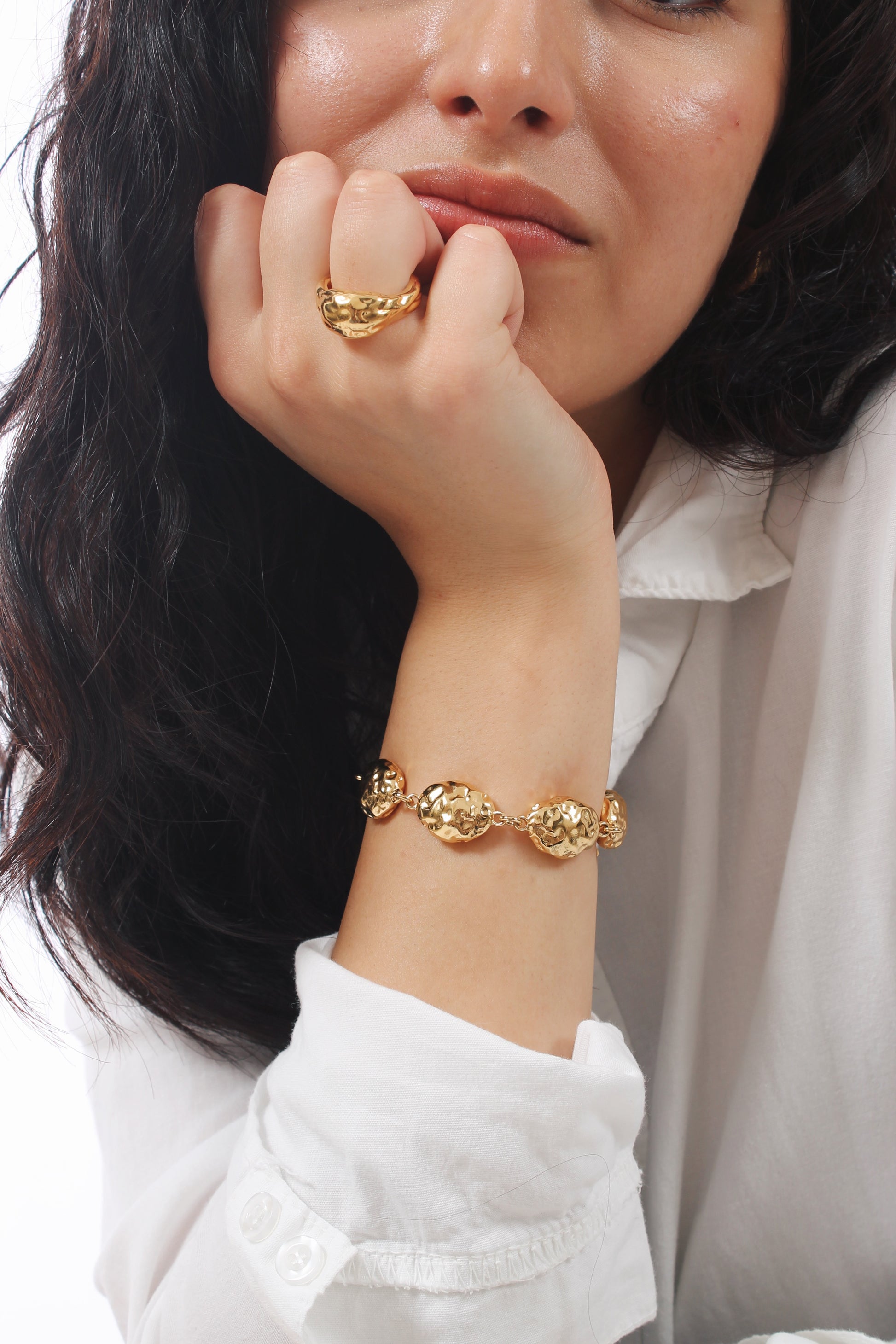 Un abrazo de la costa. Pulsera de piedras bañada en oro.