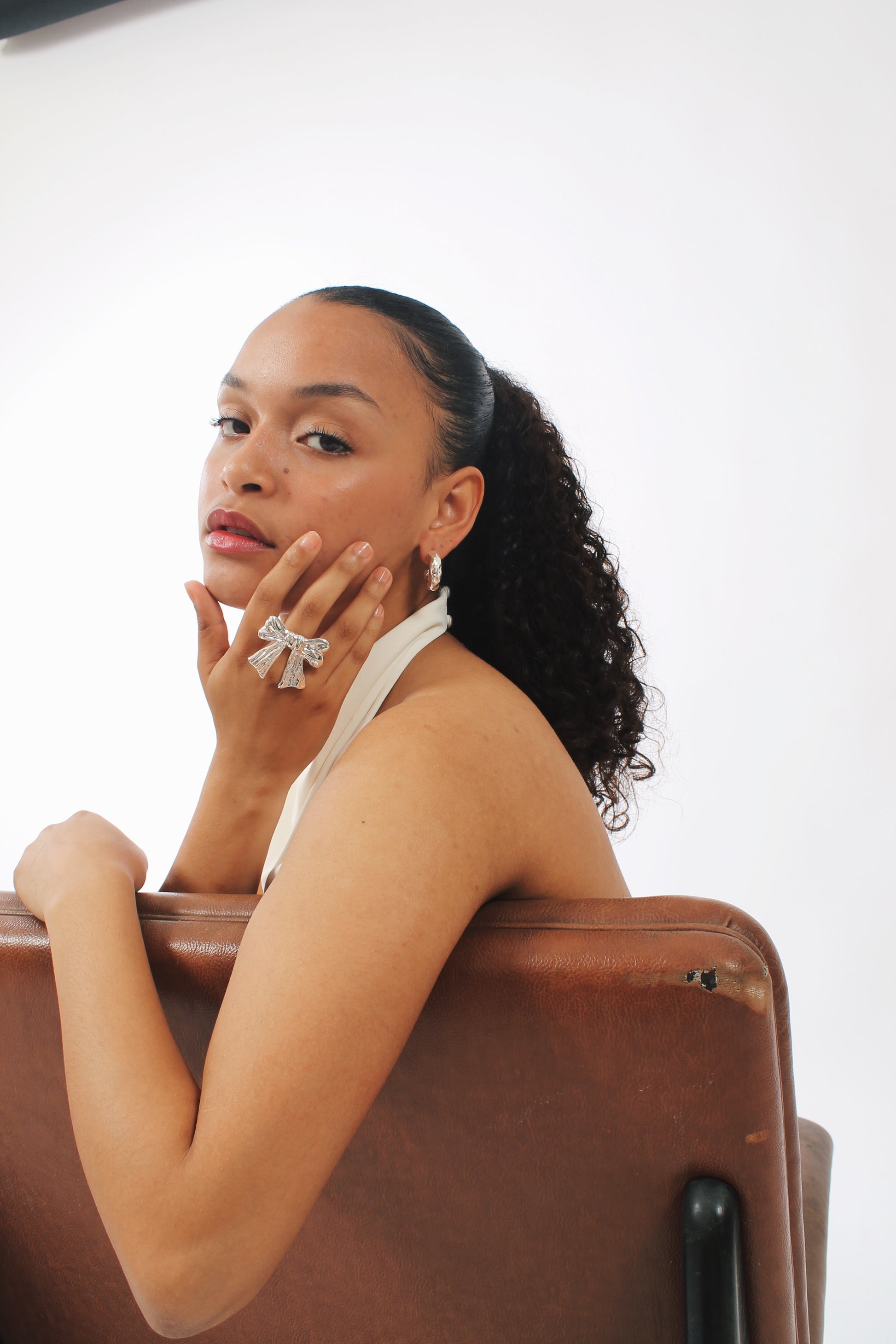 Una mirada de complicidad. Anillo de lazo ajustable bañado en plata.