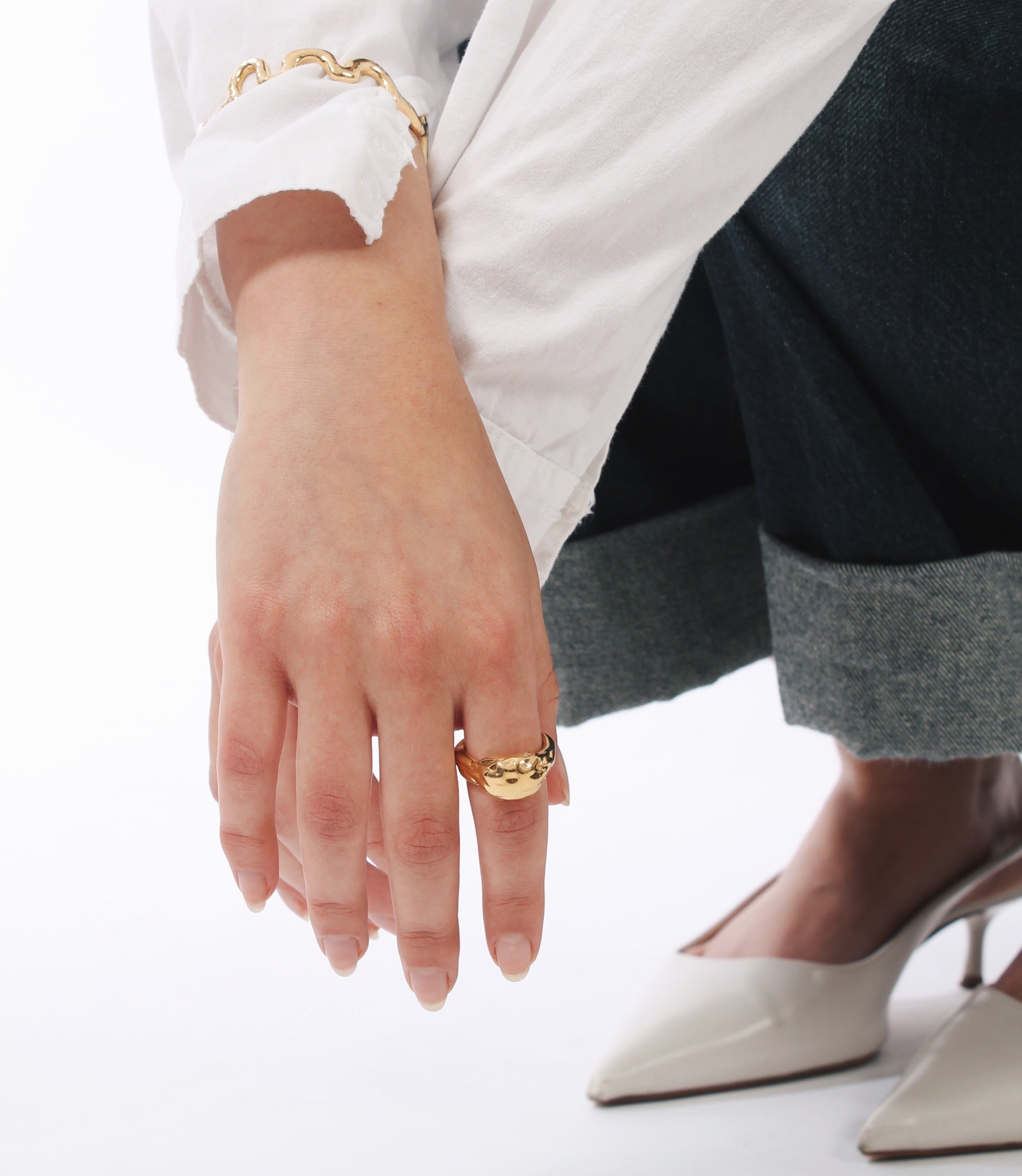 Estabilidad en medio del caos. Anillo bañado en oro con apertura trasera.